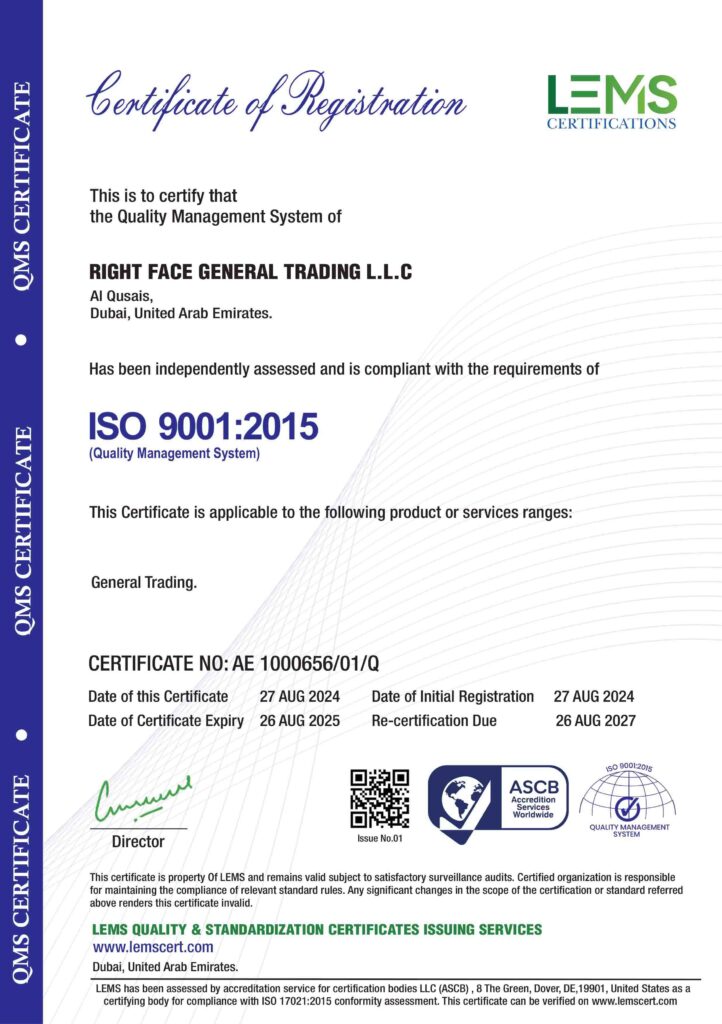 Right Face General Trading is a dynamic and customer-centric trading company based in the vibrant city of Dubai, United Arab Emirates. With a commitment to excellence, we specialize in the distribution of a diverse range of high-quality products, including medical consumables, dental products, hygiene solutions, industrial spare parts, office stationery, and safety equipment. Our unwavering dedication to delivering superior products and services has established us as a trusted partner for businesses across various industries.